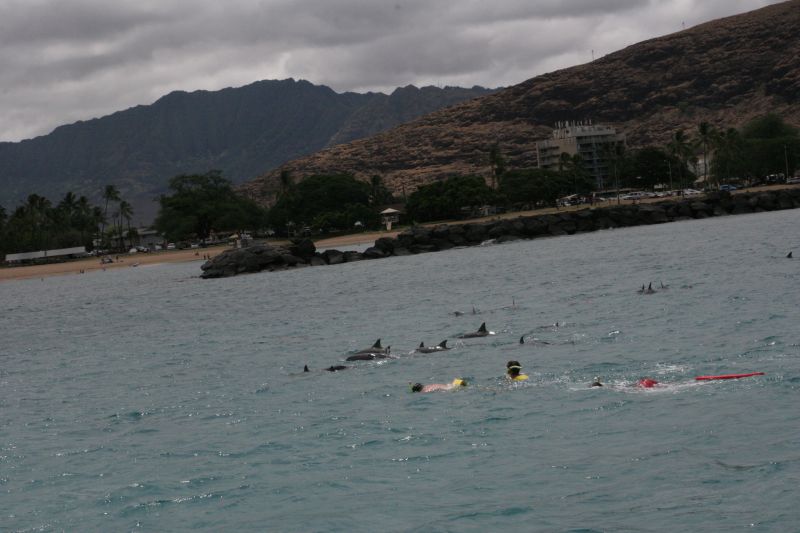 Dit hebben wij zelf ook gedaan en dat was echte voor mij het gaafste wat ik gedaan heb deze vakantie. Met dolfijnen zwemmen was voor mij echt een geweldige ervaring en zou het zeker nog een keertje willen doen. Eerst ga je een stuk varen opzoek naar de dolfijnen, de mensen die je begeleiden weten precies waar de dolfijnen zijn want de dolfijnen zwemmen altijd een bepaalde ronde en daar komen ze vanzelf weer een keer langs. En dolfijnen vind het ook heel leuk om met je mee te zwemmen naast de boot. Maar eerst zijn we naar de schildpadden geweest. Ze hebben daar een hele mooie plek gevonden waar een grote groep schildpadden leven. Het ziet er heel mooi uit en er zwemmen heel veel schildpadden. Daarna naar de dolfijnen en dat vond ik toch wel het allermooiste. Je gaat het water in en ze zwemmen gewoon onder je door en komen vlak voor je omhoog en dat is echt super gaaf. Ik raad het zeker aan om dat te gaan doen als je ooit naar Hawaii gaat.